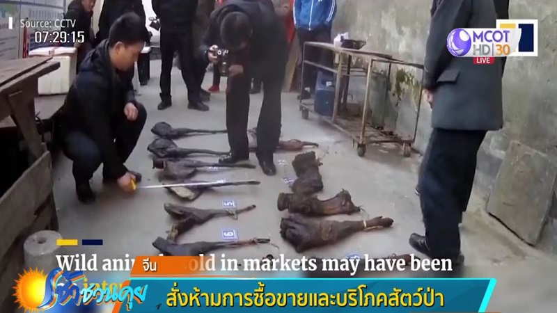 ทางการจีนสั่งห้ามการซื้อขายและบริโภคสัตว์ป่าโดยทันทีและครอบคลุม เพื่อป้องกันการระบาดของโรคไวรัสโควิด-19 หลังหลายฝ่ายยังเชื่อว่าเป็นต้นตอการระบาดของโรคติดเชื้อไวรัสโควิด-19 ตั้งแต่เมื่อปลายปีที่แล้ว ยอดผู้เสียชีวิตและติดเชื้อทะยานขึ้นรายวันนับแต่นั้น โดยข้อมูลสิ้นสุดเมื่อวันที่ 24 ก.พ.63 ยอดผู้เสียชีวิตในจีนอยู่ที่ 2,663 คน ผู้ติดเชื้ออยูที่ 77,658 คน เจ้าหน้าที่จีนเชื่อว่าต้นตอแพร่ระบาดมาจากตลาดสดขายอาหารทะเลและสัตว์ป่าในเมืองอู่ฮั่น มณฑลหูเป่ย์