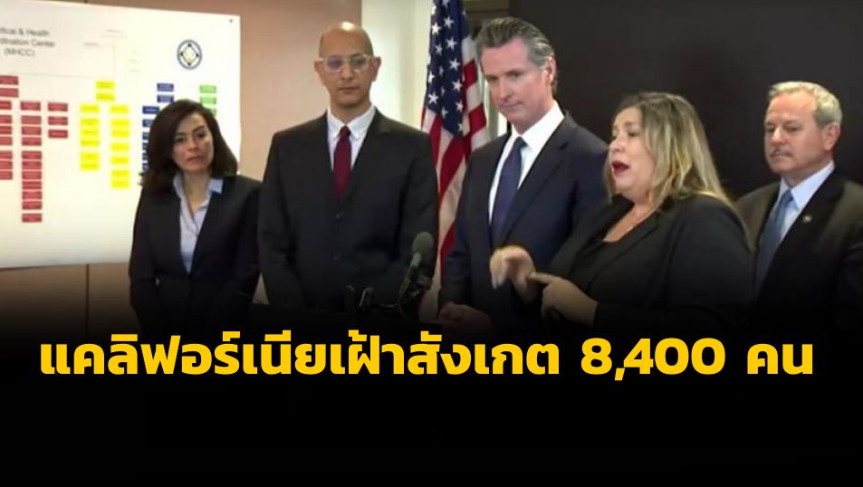 แคลิฟอร์เนีย 28 ก.พ.- รัฐแคลิฟอร์เนียกำลังเฝ้าสังเกตอาการโรคติดเชื้อไวรัสโคโรนา 2019 หรือโควิด-19 กับคนกว่า 8,400 คนที่มากับเที่ยวบินพาณิชย์ เนื่องจากเป็นกังวลหลังจากพบผู้ป่วยที่ไม่ทราบต้นตอ แต่มีปัญหาชุดตรวจไม่เพียงพอ