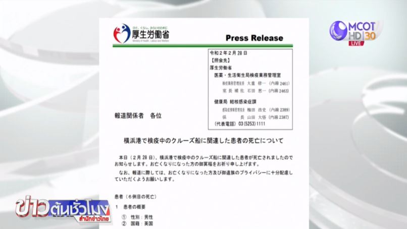 ญี่ปุ่น 29 ก.พ.- ผู้ว่าราชการจังหวัดฮอกไกโดของญี่ปุ่น ประกาศภาวะฉุกเฉินเป็นเวลา 3 สัปดาห์ เพื่อรับมือกับการแพร่ระบาดของเชื้อไวรัสโคโรนา 2019