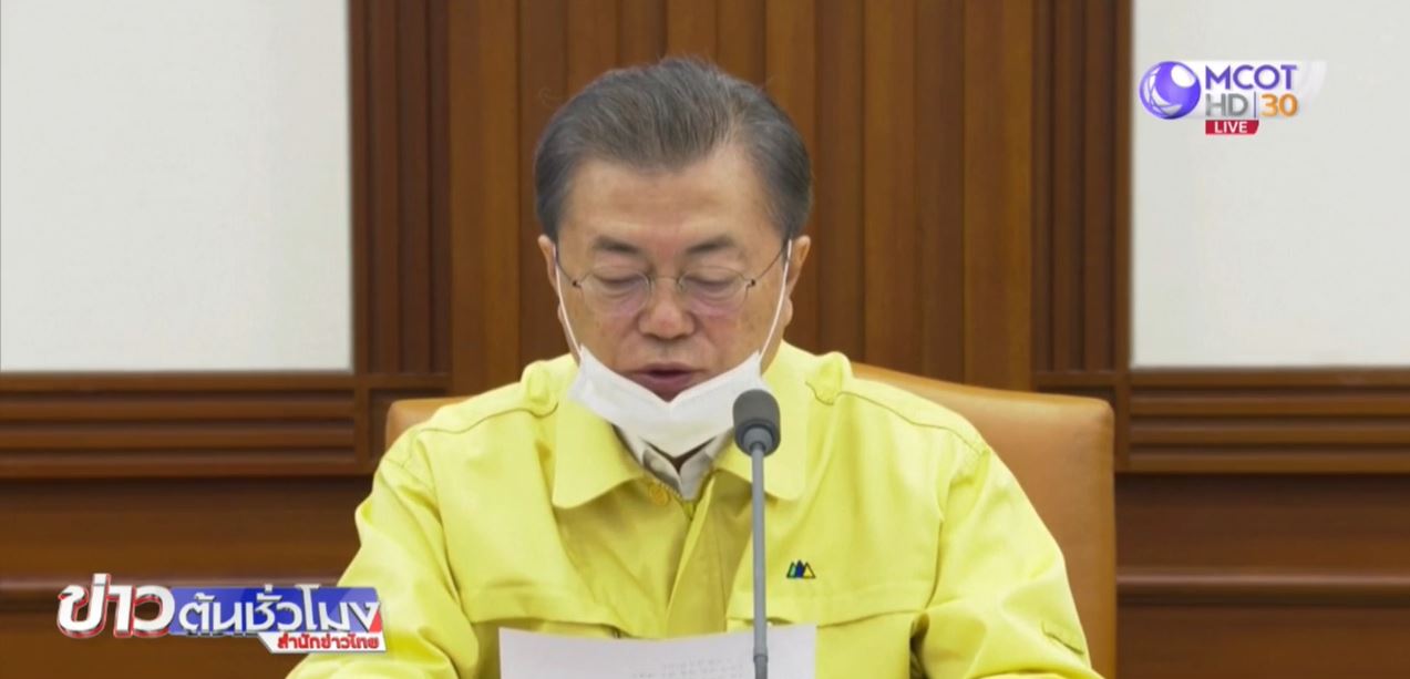เกาหลีใต้ 3 มี.ค. – ประธานาธิบดีมูน แจ อิน ของเกาหลีใต้ ประกาศสงครามต่อสู้กับการแพร่ระบาดของเชื้อไวรัสโคโรนา 2019 โดยกำหนดให้หน่วยงานทุกแห่งของรัฐบาลที่มีหน้าที่เกี่ยวข้องทำงานตลอด 24 ชั่วโมง เพื่อสกัดกั้นการแพร่เชื้อ