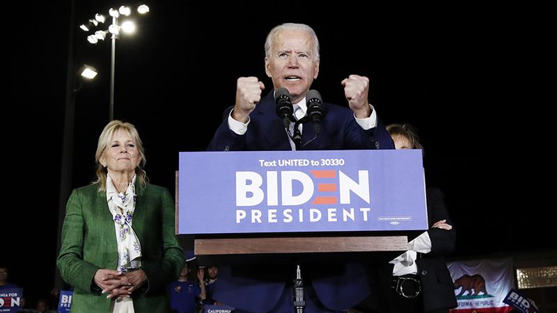 สถานีโทรทัศน์หลายแห่งในสหรัฐคาดว่า นายไบเดนวัย 77 ปี จะชนะ 9 รัฐประกอบด้วยแอละแบมา อาร์คันซอ แมสซาชูเซตส์ มินนิโซตา นอร์ทแคโรไลนา โอคลาโฮมา เทนเนสซี เทกซัส และเวอร์จิเนีย ส่วน ส.ว.เบอร์นี แซนเดอร์ คู่แข่งคนสำคัญวัย 78 ปี จะชนะใน 3 รัฐประกอบด้วยโคโลราโด ยูทาห์ และเวอร์มอนต์ ส่วนรัฐแคลิฟอร์เนียและรัฐเมน สูสีเกินกว่าจะชี้ขาดได้ เอเอฟพีตั้งข้อสังเกตว่า การที่นายไบเดน ผู้ชูนโยบายสายกลางได้เสียงสนับสนุนมากมายจากชาวอเมริกันทางใต้สะท้อนว่าเขามีฐานเสียงแข็งแกร่งในกลุ่มชาวอเมริกันเชื้อสายแอฟริกัน การเลือกตั้งของพรรคเดโมแครตในวันซูเปอร์ทิวส์เดย์มีคะแนนคณะผู้เลือกตั้งหรือเดลิเกตทั้งหมด 1,357 คะแนน คิดเป็นหนึ่งในสามของทั้งประเทศ