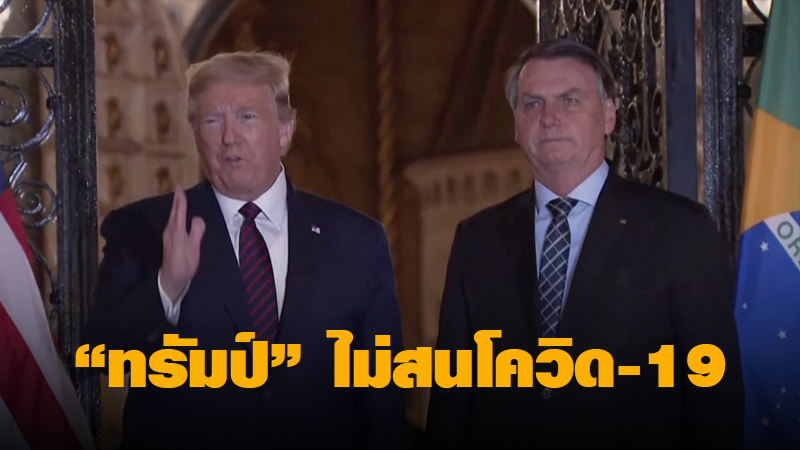 ประธานาธิบดีโดนัลด์ ทรัมป์ ผู้นำสหรัฐ กล่าวระหว่างพบปะกับนายชาอีร์ โบลโซนาโร ประธานาธิบดีของบราซิล ที่รีสอร์ต มาร์-อา-ลาร์โก ในรัฐฟลอริดา ว่าได้ตัดสินใจเดินหน้าการชุมนุมทางการเมืองต่อ แม้จะมีความกังวลกับการระบาดของเชื้อโควิด-19 พร้อมระบุว่า มาตรการต่างๆ ที่รัฐบาลใช้จัดการกับโควิด-19 เป็นไปอย่างดีเยี่ยม รวมถึงยังร่วมมือกับทั่วโลกในการป้องกันและแก้ปัญหาการแพร่ระบาดเป็นอย่างดี ขณะเดียวกันไม่กังวลว่าเชื้อโควิด-19 จะลุกลามเข้าทำเนียบขาวด้วย. – สำนักข่าวไทย