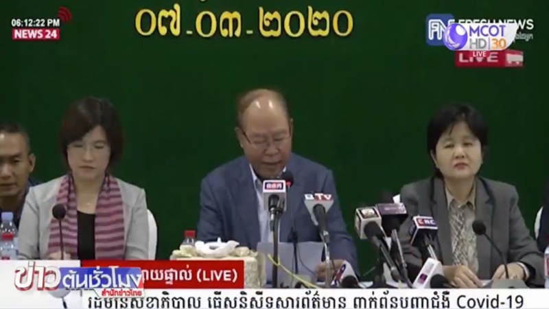 กัมพูชา 8 มี.ค. – กัมพูชาพบผู้ติดเชื้อไวรัสโควิด-19 รายแรก เป็นชายวัย 38 ปี ซึ่งสัมผัสโดยตรงกับนักท่องเที่ยวชาวญี่ปุ่นที่ติดเชื้อไวรัสโควิด-19