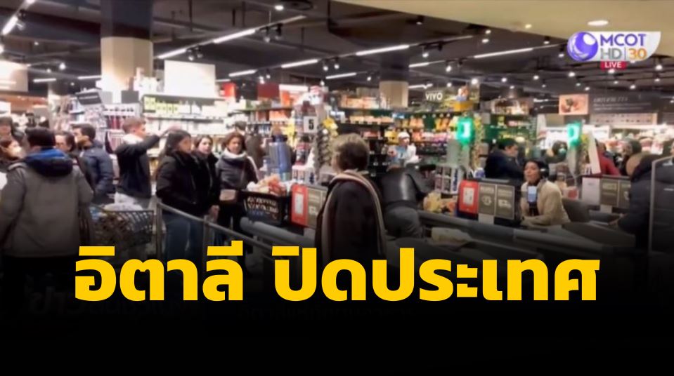 ความคืบหน้าหลังนายกรัฐมนตรีจูเซปเป กอนเต สั่งปิดประเทศโดยสิ้นเชิง เพื่อควบคุมการแพร่ระบาดของเชื้อไวรัสโคโรนา 2019 บรรยากาศตามซูเปอร์มาร์เก็ตหลายแห่งในกรุงโรม เมืองหลวงของอิตาลี เนืองแน่นไปด้วยชาวเมืองที่ต่างมาเข้าแถวรอซื้ออาหารไปกักตุน ซึ่งมาตรการปิดประเทศของรัฐบาลอิตาลีมีผลบังคับใช้จนถึงวันที่ 3เมษายน