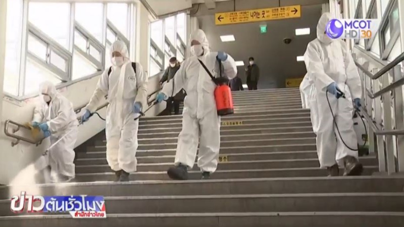 สถานการณ์การแพร่ระบาดของเชื้อไวรัสโควิด-19 ที่เกาหลีใต้ วันนี้เจ้าหน้าที่เร่งพ่นยาฆ่าเชื้อภายในบริเวณสถานีรถไฟใต้ดินแห่งหนึ่งในกรุงโซล หลังพนักงานคอลเซ็นเตอร์ที่ทำงานอยู่ที่อาคารแห่งหนึ่งในบริเวณนี้ติดเชื้อไวรัสโควิด-19 นับเป็นการติดเชื้อไวรัสโควิด-19 แบบกลุ่มที่มีจำนวนผู้ติดเชื้อมากที่สุดในกรุงโซลที่มาจากสถานที่เดียวกัน จากข้อมูลขององค์การอนามัยโลกระบุว่าผู้ติดเชื้อไวรัสโควิด-19 ที่มีอาการไม่รุนแรงจะดีขึ้นภายในระยะเวลาประมาณ 2 สัปดาห์ แต่ถ้ามีอาการรุนแรงอาจต้องใช้เวลารักษานานตั้งแต่ 3-6 สัปดาห์.-สำนักข่าวไทย