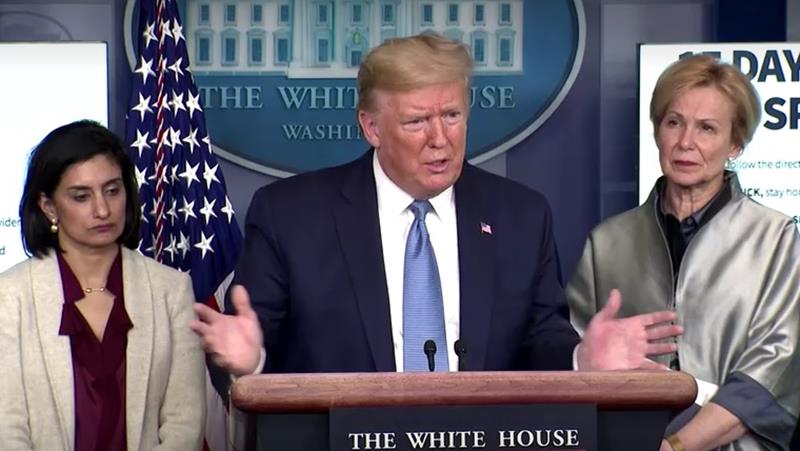 วอชิงตัน 17 มี.ค. – ประธานาธิบดีโดนัลด์ ทรัมป์ ผู้นำสหรัฐออกแนวทางใหม่สำหรับช่วง 15 วันข้างหน้าในการปกป้องชาวอเมริกันจากโรคติดเชื้อไวรัสโคโรนา 2019 หรือโควิด-19 โดยภายใต้แนวทางดังกล่าวได้แนะให้ผู้คนหลีกเลี่ยงการชุมนุมกันเกิน 10 คน รวมถึงการกินหรือการดื่มตามบาร์ ร้านอาหาร และศูนย์อาหาร