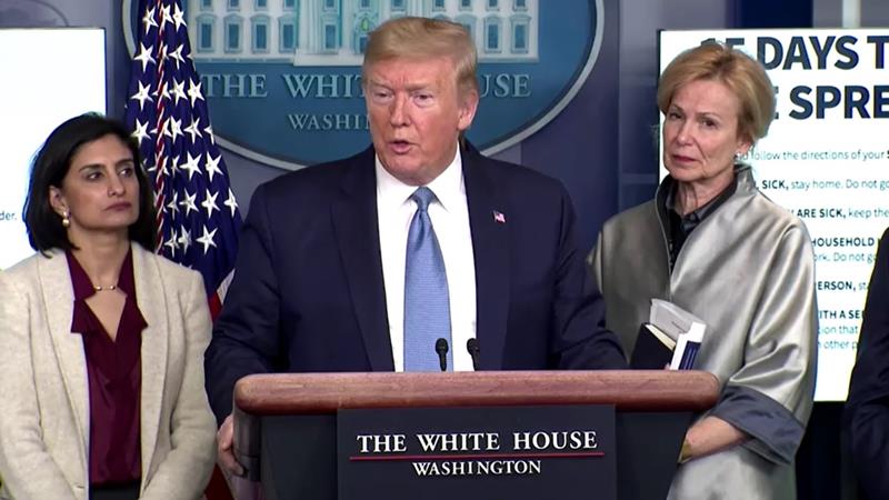 ประธานาธิบดีทรัมป์ทวีตเมื่อคืนวันจันทร์ตามเวลาสหรัฐว่า สหรัฐจะให้การสนับสนุนอย่างเต็มกำลังกับอุตสาหกรรมอย่างสายการบินและอื่น ๆ ที่ได้รับผลกระทบเป็นพิเศษจากไวรัสจีน นับเป็นครั้งแรกที่ผู้นำสหรัฐใช้คำนี้ เพราะที่ผ่านมามีแต่คนสนิทของเขาที่เรียกว่าไวรัสโคโรนาจีน นายบิล เดอ บลาซิโอ นายกเทศมนตรีนครนิวยอร์ก ทวีตตำหนิทรัมป์ว่า ชุมชนชาวอเมริกันเชื้อสายจีนที่ทรัมป์ต้องรับใช้กำลังเดือดร้อนหนักอยู่แล้ว จึงไม่ต้องการให้ทรัมป์ยั่วยุให้เกิดความใจแคบไร้เหตุผลมากยิ่งขึ้นไปอีก