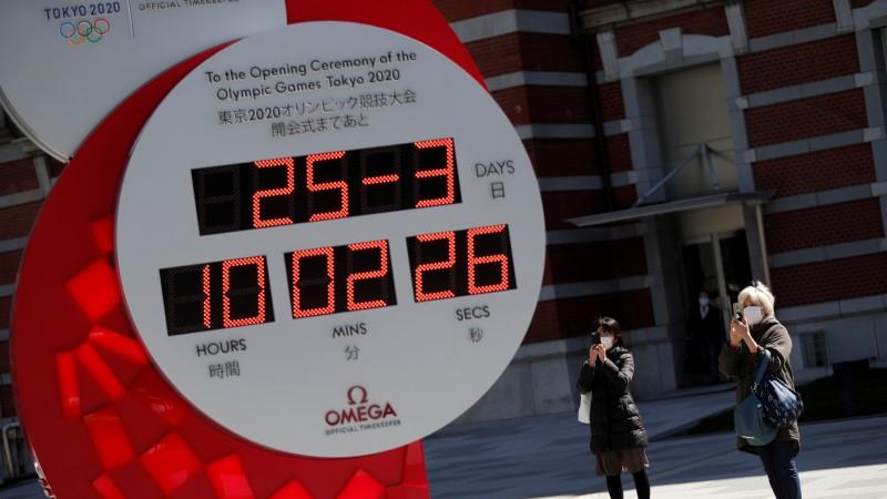 โตเกียว 25 มี.ค.- ผู้สัญจรผ่านหน้าสถานีรถไฟโตเกียวพากันถ่ายภาพเป็นที่ระลึกกับนาฬิกาโอลิมปิกฤดูร้อน โตเกียว 2020 ที่หยุดการนับถอยหลังแล้ว เมื่อคณะกรรมการโอลิมปิกสากลหรือไอโอซี (IOC) ประกาศเลื่อนไปอีกหนึ่งปี เพราะโรคติดเชื้อไวรัสโคโรนา 2019 หรือโควิด-19 ระบาด