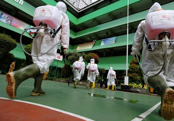 จาการ์ตา 26 มี.ค. – อินโดนีเซียตั้งจุดสำหรับให้บริการสเปรย์ฆ่าเชื้อโรคและล้างมือ กระจายทั่วกรุงจาการ์ตา นครหลวงของประเทศ ที่มีประชากรอยู่ประมาณ 10 ล้านคน เพื่อพยายามหยุดการระบาดของเชื้อไวรัสโคโรนา สายพันธุ์ใหม่ หรือ โควิด-19