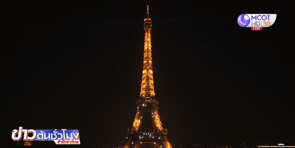 ส่วนที่หอไอเฟลมีการเปิดไฟเพื่อเป็นสัญลักษณ์ และขึ้นตัววิ่งให้กำลังใจ ขอบคุณแพทย์และพยาบาล ซึ่งเป็นแนวหน้าในการต่อสู้กับโรคระบาดโควิด-19.-สำนักข่าวไทย