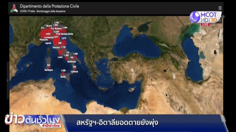 ขณะที่อิตาลีมีผู้เสียชีวิตเพิ่มอีก 755 คน ยอดรวมอยู่ที่ 10,779 คน ส่วนผู้ติดเชื้อรายใหม่เพิ่มอีกกว่า 5,000 คน ยอดรวมทั้งหมดเกือบ 98,000 คนแล้ว และที่สเปนมีผู้เสียชีวิตเพิ่มมากถึง 821 คน ยอดรวมทั้งหมดกว่า 6,800 คน และมีผู้ติดเชื้อรวมกว่า 80,000 คน