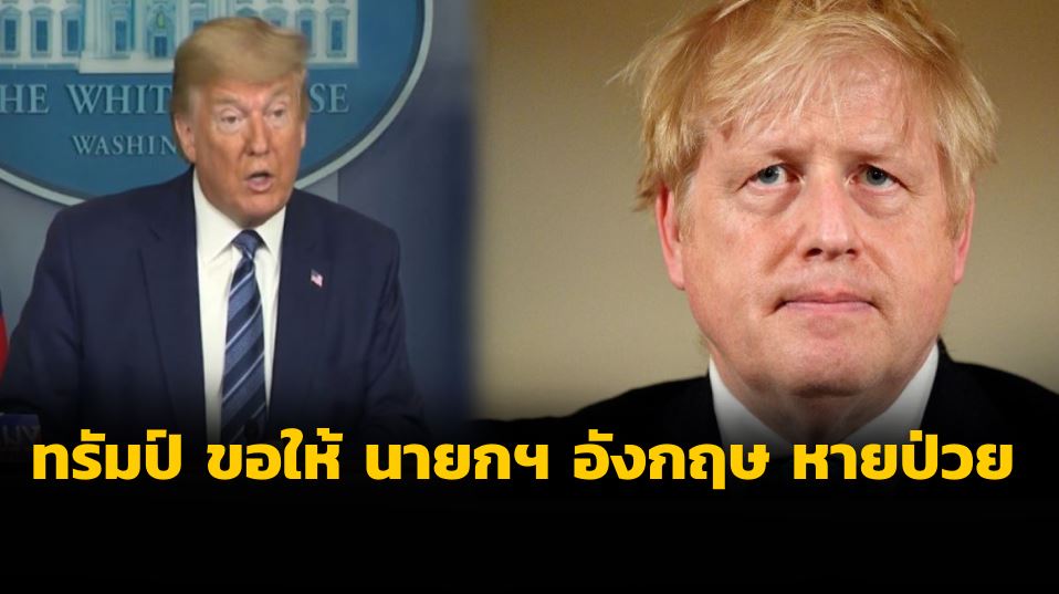 สหรัฐ 6 เม.ย. – ผู้นำสหรัฐอวยพรให้นายบอริส จอห์นสัน นายกฯ อังกฤษ หายป่วยโดยเร็ว หลังนายจอห์นสันมีอาการไข้ขึ้นและคาดว่าโควิด-19 ที่นายจอห์นสันติดเชื้อก่อนหน้านี้กำเริบขึ้นมาอีก