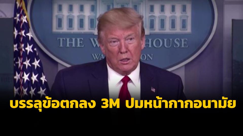 ประธานาธิบดีทรัมป์เผยว่า บรรลุข้อตกลงฉันมิตรกับ 3M แล้วเรื่องจัดหาหน้ากากอนามัยคุณภาพสูงอีกเดือนละ 55.5 ล้านชิ้น ซึ่งจะทำให้บุคลากรทางการแพทย์ในสหรัฐมีหน้ากากอนามัยใช้อีก 166.5 ล้านชิ้นในช่วงไม่กี่เดือนข้างหน้า เป็นอันว่าจบมหากาพย์ 3M ด้วยดี สัปดาห์ที่แล้วทรัมป์เพิ่งตำหนิ 3M ว่าไม่ย้ายฐานการผลิตกลับมาในประเทศ และได้นำกฎหมายการผลิตเพื่อการป้องกันประเทศสมัยสงครามเกาหลีกลับมาใช้กับบริษัทนี้ บังคับให้ต้องผลิตเพื่อการป้องกันประเทศ ขณะที่บางคนกล่าวหา 3M ว่าไม่รักชาติเพราะยังคงจำหน่ายหน้ากากอนามัยแบบ N95 ให้แก่ต่างประเทศ