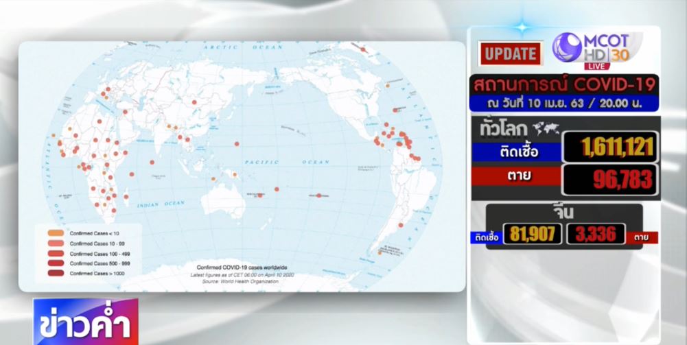 ยอดผู้เสียชีวิตจากโรคโควิด-19 ทั่วโลกตอนนี้ขยับเข้าใกล้หลักแสนไปทุกขณะ ล่าสุด ยอดผู้เสียชีวิตทั่วโลกเพิ่มขึ้นไปอยู่ที่กว่า 96,000 คน ติดเชื้ออีกกว่า 1.6 ล้านคน อย่างไรก็ดี ทั้งสหรัฐและยุโรป โดยเฉพาะที่สเปน และอิตาลี ต่างมียอดผู้ป่วยที่เข้ามารักษาตัวที่โรงพยาบาลลดลง ทำให้มีความหวังว่าสถานการณ์การระบาดของโรคโควิด-19 จะคลี่คลาย