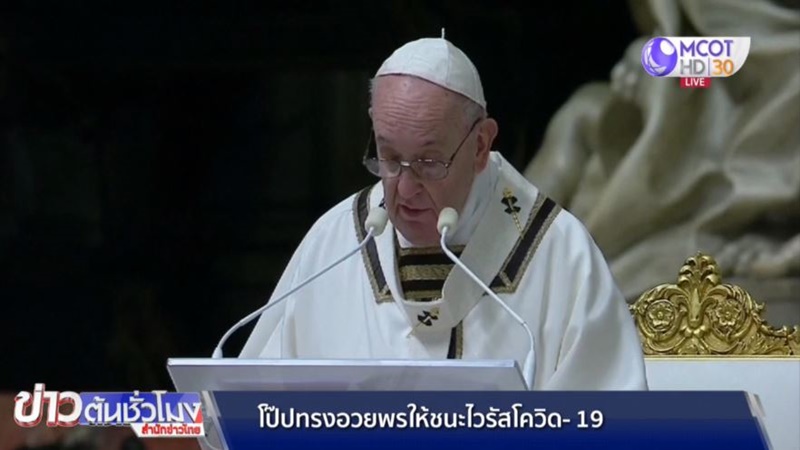 อิตาลี 12 เม.ย. – สมเด็จพระสันตะปาปาฟรานซิสทรงอวยพรเนื่องในเทศกาลอีสเตอร์ ระบุขอให้วันอีสเตอร์จงเป็นวันแห่งความหวังของประชาชนในการเอาชนะโควิด-19