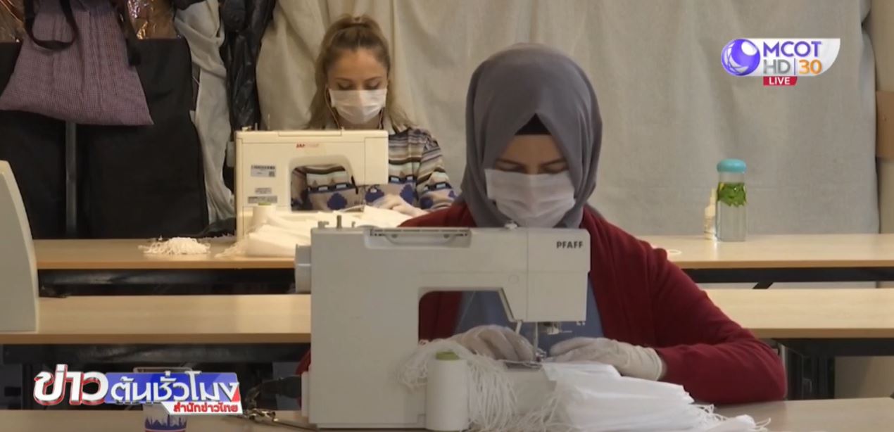 ตุรกี 13 เม.ย. – ครูในนครอิสตันบูล ใช้เวลาว่างช่วงโรงเรียนปิดช่วยกันเย็บหน้ากากอนามัยแจกจ่ายประชาชน ขณะที่ตุรกีพบผู้ติดเชื้อโควิด-19 กว่า 52,000 คน เสียชีวิตกว่า 1,100 คน