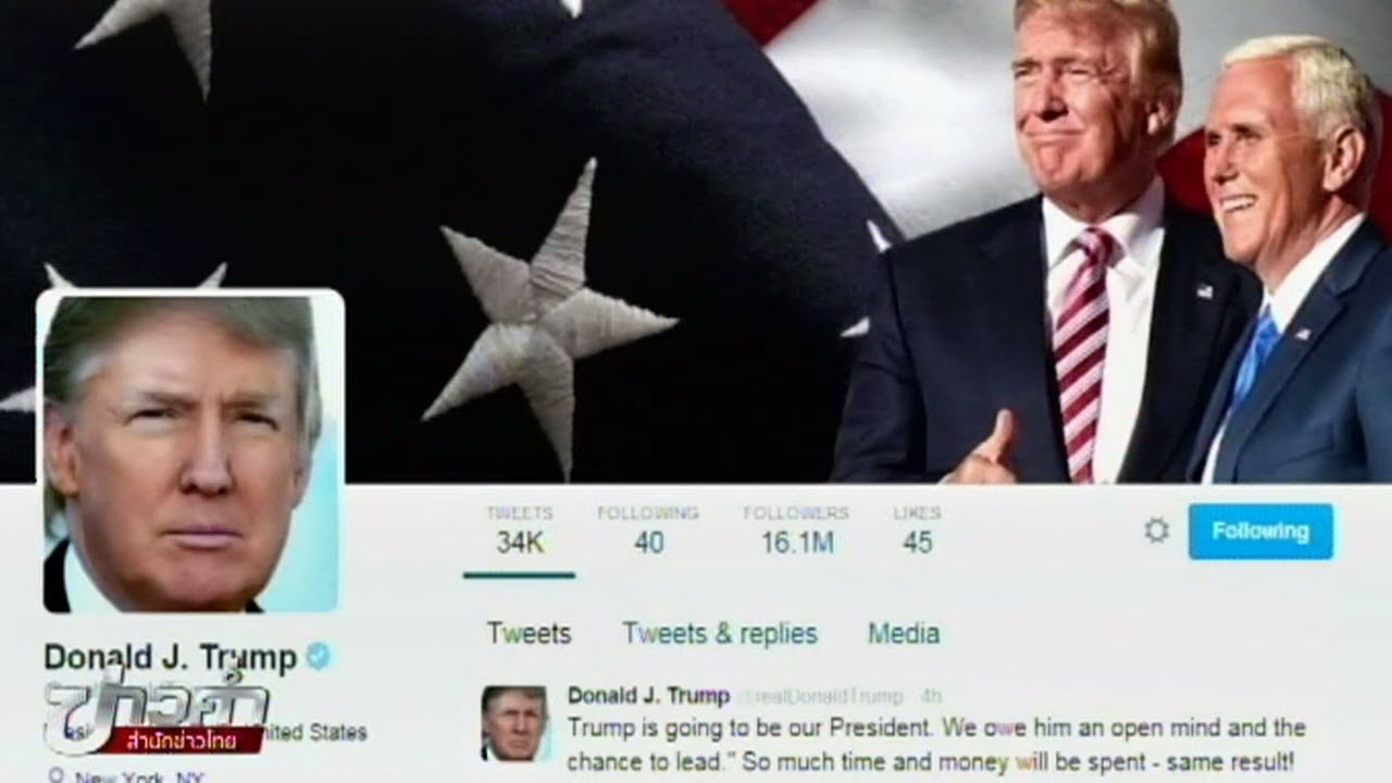 ว่าที่ประธานาธิบดีคนที่ 45 ของสหรัฐ ทวีตข้อความผ่านทวิตเตอร์ส่วนตัว @realDonaldTrump แสดงความไม่พอใจ ต่อการที่รัฐวิสคอนซิน เตรียมนับคะแนนการเลือกตั้งใหม่ ตามคำร้องของนางจิล สไตน์ ผู้สมัครจากพรรคกรีน โดยทรัมป์ระบุว่าเป็นเรื่องไร้สาระและตลกสิ้นดี ที่จะนับคะแนนใหม่ ขณะเดียวกันทรัมป์ย้ำว่าเขาจะชนะการเลือกตั้งครั้งนี้อย่างไม่มีข้อกังขา โดยจะชนะทั้งคะแนน ป๊อปปูลาโหวต และอิเล็กทรอรัลโหวต หากหักลบคะแนนที่ผิดกฎหมายหลายล้านคะแนน ออกจากจำนวนผู้ที่ลงคะแนนให้นางฮิลลารี คลินตัน