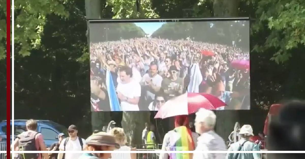 เยอรมนี 9 ส.ค.- ชาวเยอรมันในเมืองสตุตการ์ทเดินขบวนประท้วงมาตรการรัฐบาลเยอรมนี ที่เรียกร้องให้ประชาชนสวมหน้ากากอนามัย เพื่อป้องกันการแพร่ระบาดของโควิด-19 ขณะที่กลุ่มผู้เห็นความสำคัญของหน้ากากอนามัย ก็พากันเดินขบวนสนับสนุนให้สวมหน้ากากอนามัยเช่นกัน