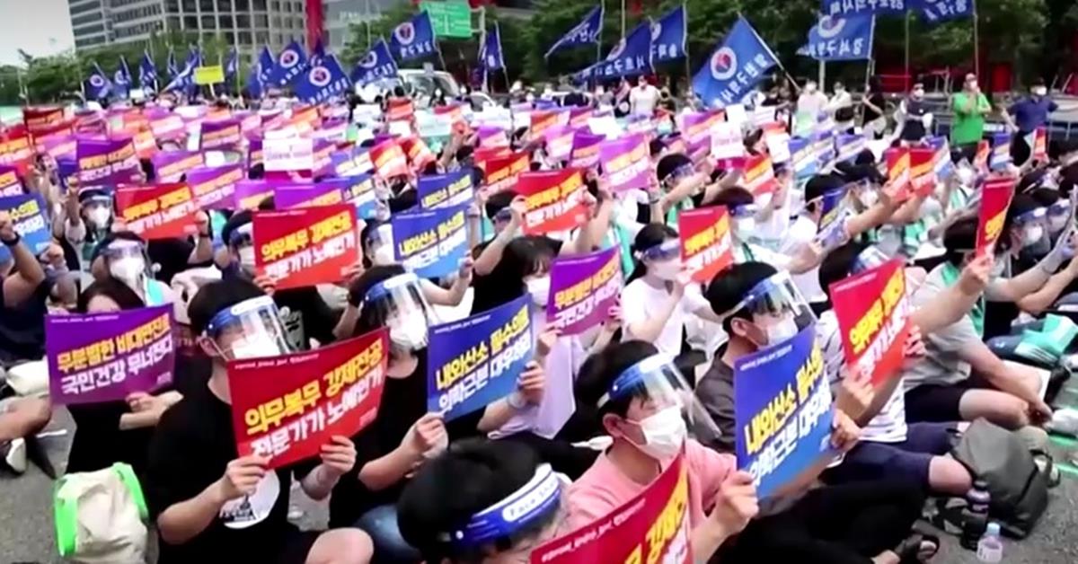 ความขัดแย้งระหว่างทางการเกาหลีใต้และกลุ่มแพทย์ทวีความรุนแรงขึ้นตั้งแต่ทางการต้องรับมือกับการระบาดของโรคโควิด-19 ระลอกใหม่ ขณะที่กลุ่มแพทย์และนักศึกษาแพทย์เกือบ 16,000 คนออกมารวมตัวกันประท้วงนโยบายของรัฐบาลเกาหลีใต้ที่จะเพิ่มจำนวนแพทย์ในอีก 10 ปีข้างหน้าเพื่อรับมือกับวิกฤตด้านสาธารณสุขตั้งแต่วันที่ 21 สิงหาคมที่ผ่านมา. – สำนักข่าวไทย