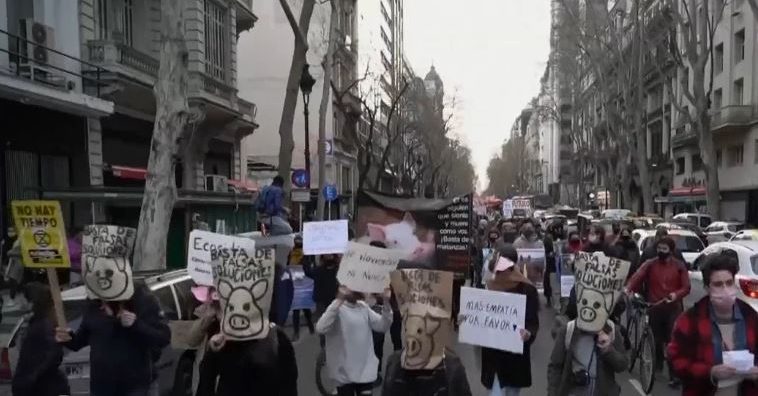ที่กรุงบัวโนสไอเรส เมืองหลวงของอาร์เจนตินา กลุ่มพิทักษ์สัตว์หลายร้อยคนเดินขบวนประท้วงมุ่งตรงไปยังทำเนียบประธานาธิบดีคัดค้านโครงการสร้างฟาร์มสุกรขนาดใหญ่หลายแห่งในอาร์เจนตินา เพื่อป้อนตลาดของจีน