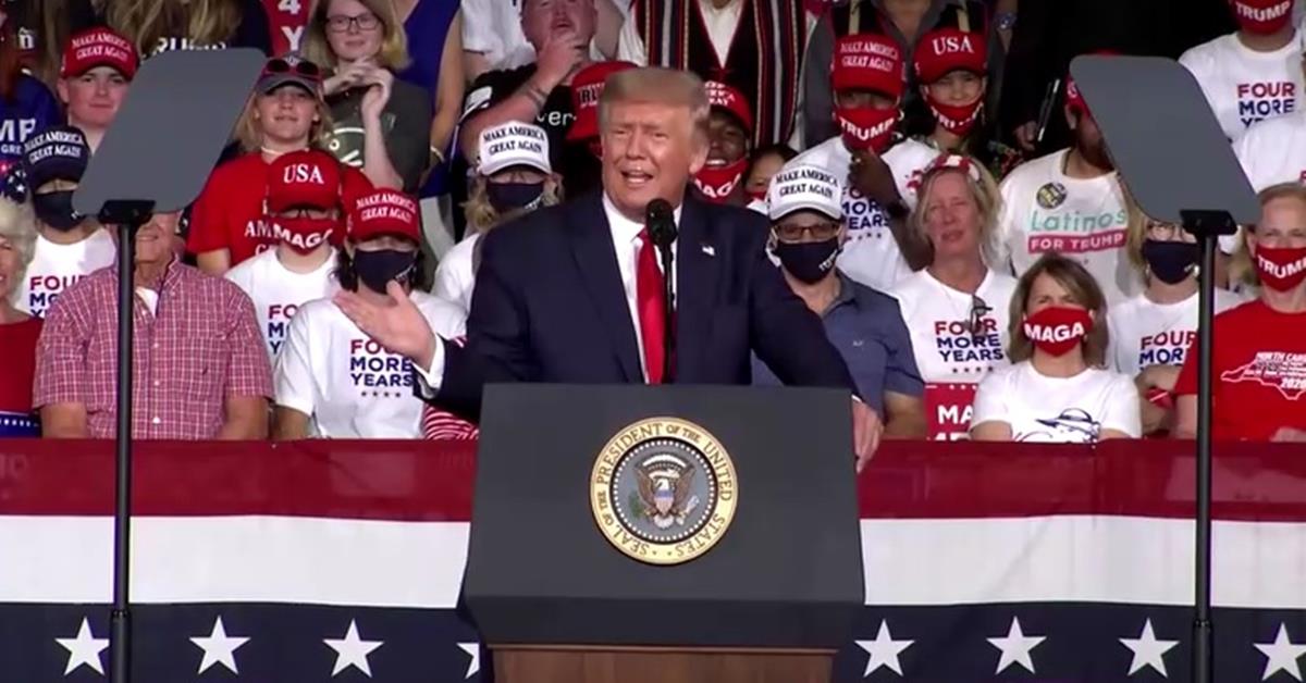 ประธานาธิบดีทรัมป์กล่าวหานายโจ ไบเดน คู่แข่งจากพรรคเดโมแครตและนางคาลามา แฮร์ริส ผู้สมัครคู่ของนายไบเดนว่า บ่อนทำลายวิทยาศาสตร์และทำให้ชีวิตนับไม่ถ้วนต้องเสี่ยงอันตรายจากการหาเสียงต่อต้านวัคซีนอย่างไร้ความยั้งคิด แทนที่จะชื่นชมเรื่องสหรัฐจะมีวัคซีนในเวลาอันสั้นว่าเป็นเรื่องที่ยิ่งใหญ่และช่วยชีวิตคน ทั้งคู่กลับพยายามดูหมิ่นและให้ร้าย หากเป็นรัฐบาลชุดก่อนหรือรัฐบาลชุดอื่น ๆ คงต้องใช้เวลาสองสามปี แต่รัฐบาลของเขาเร่งพัฒนาจนไม่มีใครเชื่อว่าจะทำได้และมีความปลอดภัยครบถ้วน