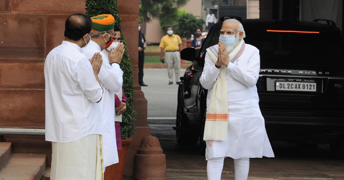 สมาชิกสภาอินเดียรวมทั้งนายกรัฐมนตรีนเรนทรา โมดี สวมหน้ากากอนามัยและมีกระจกใสกั้นระหว่างที่นั่งเพื่อป้องกันการแพร่และติดเชื้อไวรัสโคโรนา ชั่วโมงการประชุมถูกลดให้สั้นลง โดยแบ่งเป็นการประชุมสภาผู้แทนราษฎรในช่วงเช้า และการประชุมวุฒิสภาในช่วงบ่าย นายกรัฐมนตรีโมดีวัย 69 ปี เผยกับสื่อก่อนเข้าประชุมว่า ไม่สามารถหย่อนยานได้หากยังไม่มียารักษา หวังว่าจะมีวัคซีนในเร็ว ๆ นี้ ไม่ว่าจะมาจากส่วนใดของโลกก็ตาม