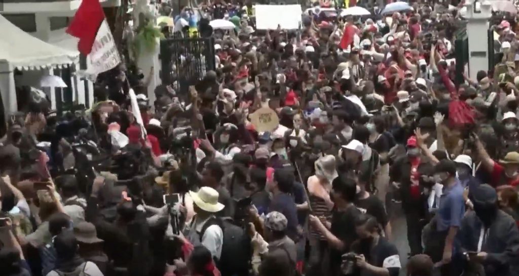 เจแปนไทมส์ของญี่ปุ่นรายงานว่า ผู้ชุมนุมหลายร้อยคนเริ่มมารวมตัวกันรอบๆ มหาวิทยาลัยธรรมศาสตร์ ท่าพระจันทร์ตั้งแต่เช้า เพื่อเรียกร้องให้นายกรัฐมนตรีประยุทธ์ จันทร์โอชาลาออก ผู้ชุมนุมครั้งนี้นอกจากจะเป็นบรรดานักศึกษาหนุ่มสาวแล้ว ยังมีประชาชนที่เดินทางมาจากจังหวัดต่างๆ ของประเทศไทยด้วย