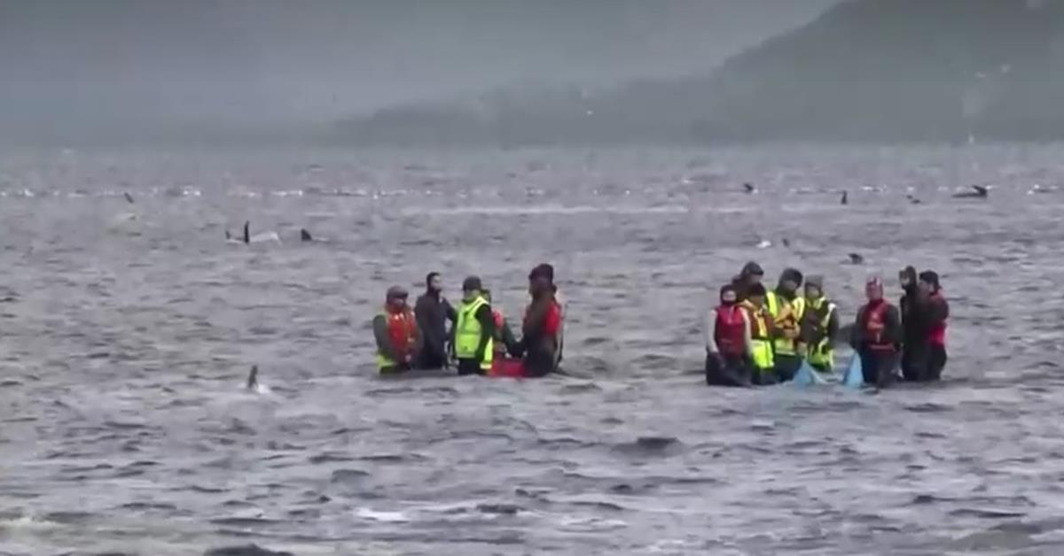 กลุ่มนักอนุรักษ์และอาสาสมัครประมาณ 60 คน ลุยน้ำเย็นจัดช่วยเหลือวาฬนำร่องเกยตื้นในปากน้ำแมคควอรีฮาร์เบอร์มาตลอดหลายวัน หลายตัวส่งเสียงร้องอย่างทุรนทุราย เพราะใกล้ตาย นักกู้ภัยคนหนึ่งเผยว่า เป็นภาพที่สะเทือนอารมณ์มาก วาฬตัวอื่นๆ ว่ายเข้ามาใกล้และส่งเสียงร้อง แสดงถึงความผูกพันระหว่างพวกมัน วาฬนำร่องเป็นสัตว์สังคม ตัวโตเต็มที่หนัก 1 ตัน ยาว 6 เมตร วาฬบางตัวที่ได้รับการช่วยเหลือให้ออกจากฝั่ง กลับมาเกยตื้นอีกเป็นครั้งที่สอง ทำให้ทีมกู้ภัยต้องเริ่มกระบวนการจบชีวิต โดยได้รับความช่วยเหลือจากสัตวแพทย์เพื่อไม่ให้ทรมานจนตาย วันนี้ได้เริ่มไปแล้ว 4 ตัว