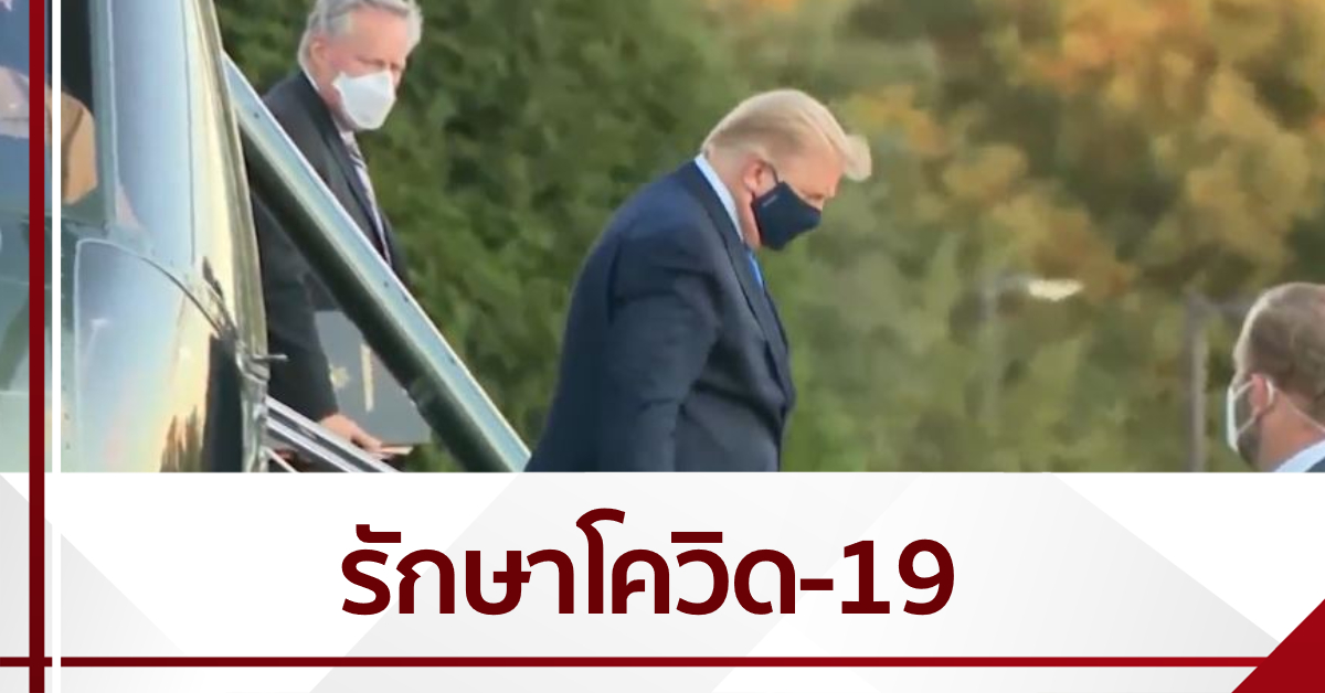 สหรัฐ 3 ต.ค. – ประธานาธิบดีโดนัลด์ ทรัมป์ ผู้นำสหรัฐ ออกเดินทางจากทำเนียบขาว ด้วยเฮลิคอปเตอร์ ไปยังศูนย์การแพทย์ทหารแห่งชาติวอลเตอร์รีด เพื่อรักษาตัวจากการติดเชื้อโควิด-19