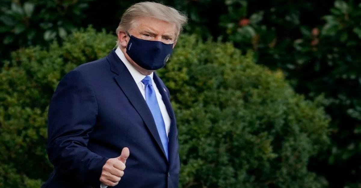 ทำเนียบขาวแถลงเมื่อวันศุกร์ตามเวลาสหรัฐว่า ประธานาธิบดีมีไข้เหนื่อยเล็กน้อย แต่ยังมีกำลังใจดี แพทย์ฉีดแอนติบอดีผสมที่อยู่ระหว่างการทดลองให้ที่ทำเนียบขาว ประธานาธิบดีสวมหน้ากากอนามัยเดินผ่านสนามหญ้าไปขึ้นมารีนวัน ที่เป็นเฮลิคอปเตอร์ของนาวิกโยธินไปยังศูนย์การแพทย์ ระหว่างนั้นยกนิ้วโป้งให้ผู้สื่อข่าวแต่ไม่ได้ให้สัมภาษณ์ใด ๆ โดยก่อนหน้านั้นได้ทวีตคลิปสั้น ๆ ความยาว 18 วินาทีขอบคุณทุกคนที่เป็นห่วง รายงานระบุว่า ศูนย์การแพทย์ทหารแห่งชาติวอเตอร์รีดมีห้องพักสำหรับประธานาธิบดีโดยเฉพาะ และเป็นสถานที่ที่ตรวจสุขภาพประจำปีของประธานาธิบดีสหรัฐ
