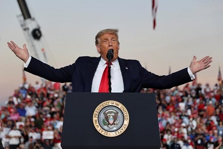ทางด้านนายทรัมป์ ได้เริ่มการตระเวนหาเสียงเลือกตั้งอีกครั้งเมื่อวานนี้ ซึ่งเป็นการปราศรัยหาเสียงครั้งแรกนับตั้งแต่เขาประกาศว่าติดเชื้อโควิด-19 โดยจุดหมายแรกคือการหาเสียงที่เมืองแซนฟอร์ด ในรัฐฟลอริดา เขาปรากฎตัวโดยไม่ได้สวมหน้ากากอนามัย ต่อหน้าผู้สนับสนุนหลายพันคนยืนติดกันไหล่ชนไหล ส่วนใหญ่ไม่ได้สวมหน้ากากอนามัย ในระหว่างการปราศรัยหาเสียงเป็นเวลา 1 ชั่งโมง เขากล่าวซ้ำว่า เขาหายจากโควิด-19 แล้ว เขามีภูมิคุ้มกันและรู้สึกแข็งแรงมาก ก่อนหน้านี้เพียงไม่กี่ชั่วโมง แพทย์ประจำทำเนียบขาวกล่าวว่า นายทรัมป์ เข้ารับการตรวจไวรัสโควิด-19 และผลออกมาเป็นลบ ซึ่งเป็นผลลัพธ์เช่นนี้ติดต่อกันหลายวันแล้ว และเขาจะไม่แพร่เชื้อโควิด-19 ให้กับผู้อื่นอย่างแน่นอน หลังจากการหาเสียงที่ฟลอริดาแล้ว นายทรัมป์ยังมีกำหนดที่จะขึ้นเวทีปราศรัยที่รัฐเพนซิลเวเนีย, ไอโอวา, นอร์ธ แคโรไลนา และจอร์เจีย ในสัปดาห์นี้.-สำนักข่าวไทย