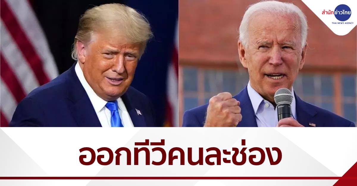 นิวยอร์ก 15 ต.ค.- สถานีโทรทัศน์ 2 ช่องในสหรัฐถูกตำหนิที่แข่งกันให้ประธานาธิบดีโดนัลด์ ทรัมป์และโจ ไบเดนแยกขึ้นเวทีตอบคำถามแบบแยกช่องในวันนี้ตามเวลาสหรัฐ หลังจากคณะกรรมการโต้วาทีหรือดีเบตยกเลิกดีเบตนัดสองวันนี้