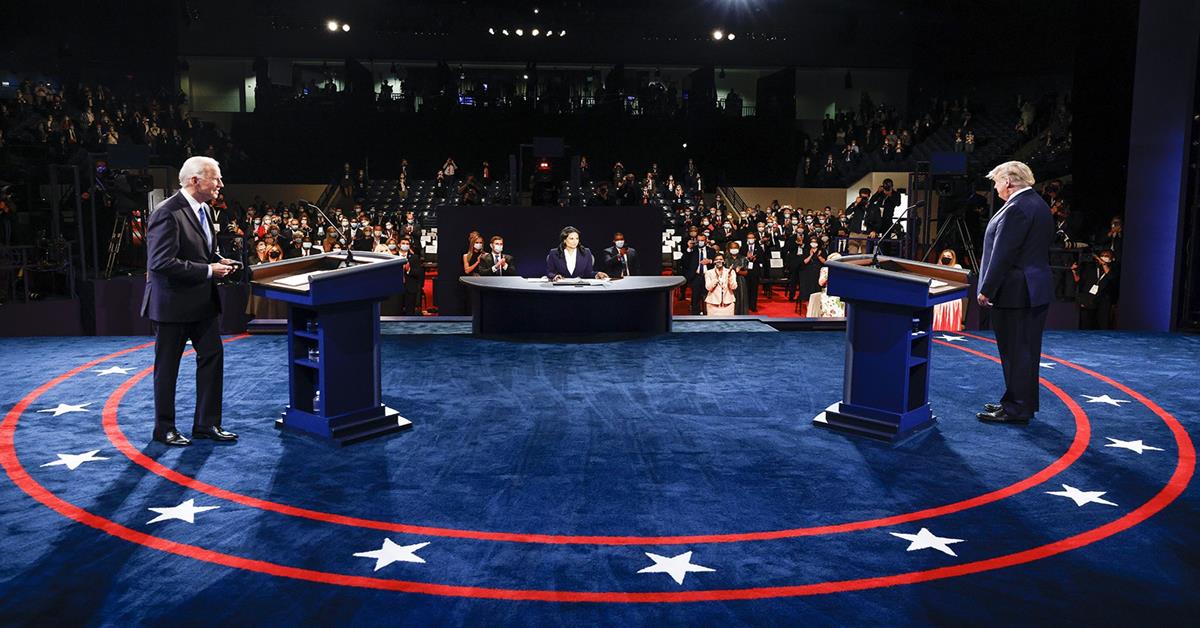 คณะกรรมการดีเบตประธานาธิบดีเผยว่า คณะหาเสียงของทั้งสองฝ่ายเห็นตรงกันว่าไม่จำเป็นต้องมีพลาสติกใสกั้น และควรนำออกไปหลังจากคณะกรรมการติดตั้งตามคำแนะนำทางการแพทย์ แท่นดีเบตของทรัมป์และไบเดนตั้งห่างกัน 12 ฟุต 8 นิ้ว (ราว 3.86 เมตร) และห่างจากผู้ดำเนินรายการ 16 ฟุต 8 นิ้ว (ราว 5 เมตร) ทุกคนในสถานที่ดีเบตต้องสวมหน้ากากอนามัยตลอดเวลา รวมทั้งเมลาเนีย ทรัมป์ สตรีหมายเลขหนึ่งที่กล้องจับภาพขณะเดินเข้ามา.-สำนักข่าวไทย