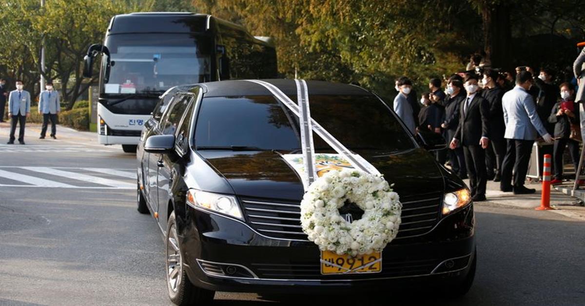 สถานีโทรทัศน์ยอนฮับทีวีรายงานว่า หลังจากเสร็จสิ้นพิธีศพช่วงเช้าที่จัดขึ้นเป็นการภายใน สมาชิกครอบครัวลีได้ขึ้นรถบัสออกจากศูนย์การแพทย์ซัมซุงในกรุงโซลมุ่งหน้าไปยังสุสานประจำตระกูลในเมืองซูวอน ห่างไปทางใต้ 30 กิโลเมตร ส่วนโลงศพนายลีที่มีพวงหรีดสีขาวอยู่ด้านหน้าถูกลำเลียงขึ้นรถบรรทุกศพสีดำ ผ่านเส้นทางที่มีความหมายต่อเขา ทั้งบ้านพักที่อยู่ใจกลางกรุงโซล โรงงานผลิตชิปของซัมซุงอิเล็กทรอนิกส์ในเมืองฮวาซอง