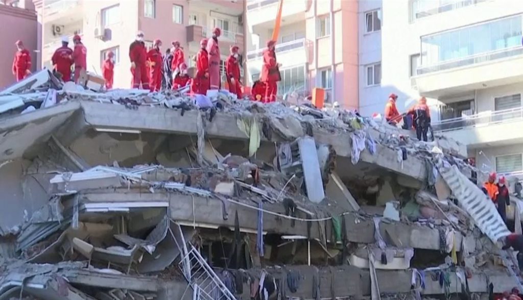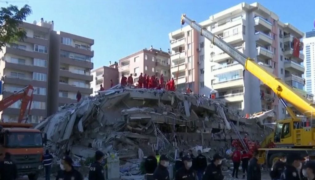 แผ่นดินไหวรุนแรงขนาด 7.0 แมกนิจูดเกิดขึ้นเมื่อเวลา 14.51 น.หรือตรงกับ 18.51 น.วานนี้ จุดศูนย์กลางอยู่ทางทิศตะวันออกเฉียงเหนือของเกาะซามอสของกรีซในทะเลอีเจี้ยน ทำให้เกิดคลื่นยกตัวสูงซัดเข้าสู่เมืองอิซเมียร์ เมืองชายฝั่งทางภาคตะวันตกของตุรกีจนท้องถนนเต็มไปด้วยน้ำ และเกิดคลื่นสึนามิขนาดเล็กรวมถึงแรงสั่น สะเทือนหลังเกิดแผ่นดินไหวหรืออาฟเตอร์ช็อกตามมาอีกหลายร้อยครั้ง เนื่องจากแผ่นดินไหวเกิดลึกลงไปใต้ดินเพียง10 กิโลเมตร จนถึงขณะนี้มีผู้เสียชีวิตอย่างน้อย 27 คน โดย 25 คนอยู่ในเมืองอิซเมียร์และ 2 คนอยู่บนเกาะซามอส แรงสั่นสะเทือนของแผ่นดินไหว ซึ่งรู้สึกไปถึงกรุงเอเธนส์ของกรีซ บัลแกเรีย และนครอิสตันบูลของตุรกี ทำให้อาคารบ้านเรือนในเมืองอิซเมียร์กว่า 20 หลังพังเสียหาย เจ้าหน้าที่กู้ภัยตุรกีได้ช่วยเหลือผู้ที่ติดอยู่ในซากอาคารออกมาได้แล้วอย่างน้อย 70 คน