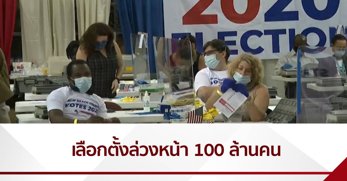 การเลือกตั้งประธานาธิบดีสหรัฐฯ ในครั้งนี้มีผู้ออกไปใช้สิทธิลงคะแนนล่วงหน้ามากกว่า 100 ล้านคน ซึ่งเป็นตัวเลขที่สูงเป็นประวัติการณ์เนื่องจากประชาชนกังวลเรื่องการแพร่ระบาดของโรคโควิด-19 จึงต้องการหลีกเลี่ยงความแออัดในวันเลือกตั้ง สำหรับการลงคะแนนล่วงหน้านั้นพบว่าเป็นการลงคะแนนผ่านทางไปรษณีย์กว่า 65.2 ล้านคน และเป็นการไปหย่อนบัตรลงคะแนนที่หน่วยเลือกตั้งด้วยตนเองกว่า 35.9 ล้านคน และคาดว่าการเลือกตั้งครั้งนี้มีผู้ใช้สิทธิถึง 160 ล้านคนหรือราวร้อยละ 67 ซึ่งถือว่าสูงเป็นประวัติการณ์เช่นกัน.-สำนักข่าวไทย