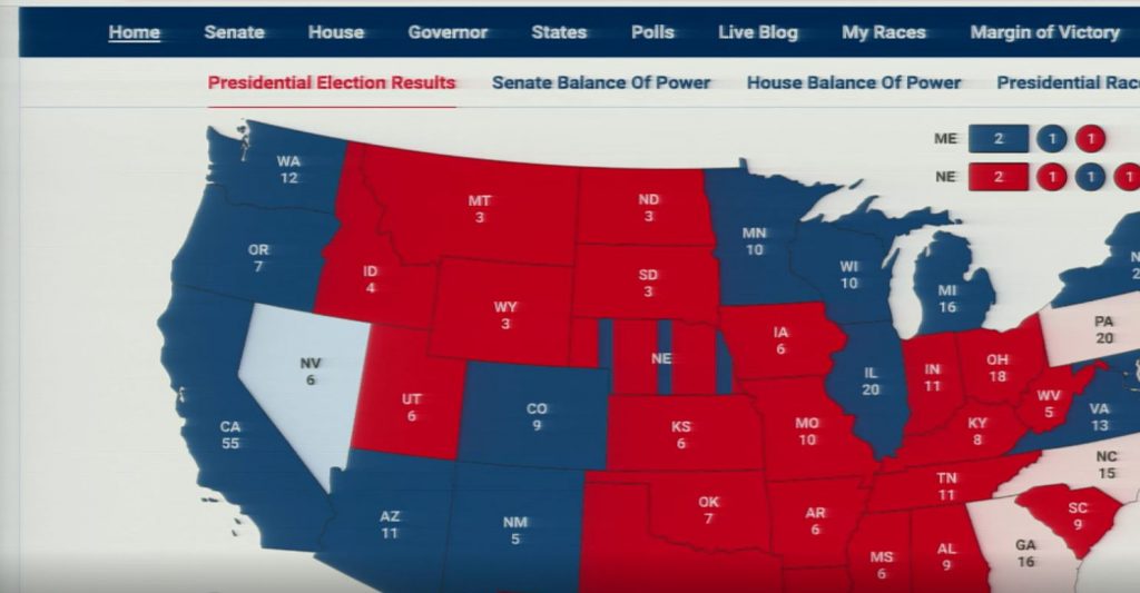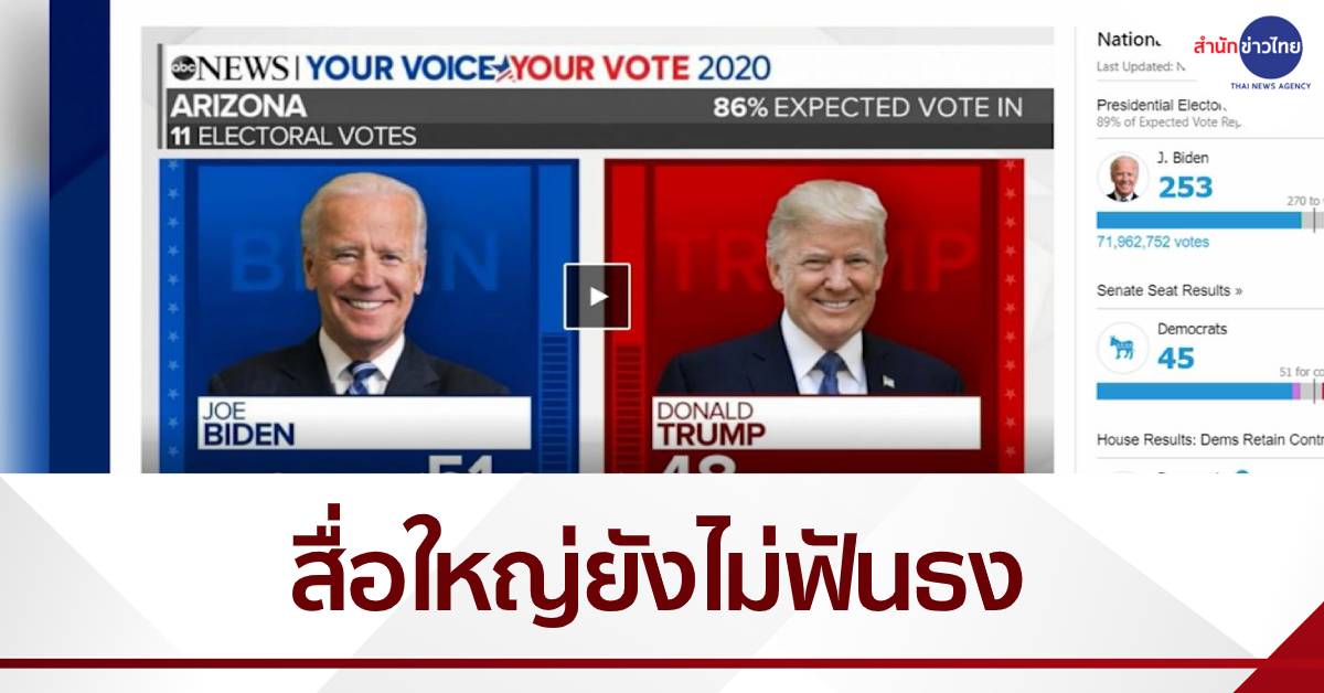 เริ่มที่ FOXNEWS ซึ่งเป็นสื่อที่ประกาศสนับสนุนโดนัลด์ ทรัมป์ ชัดเจน รายงานล่าสุดว่า พรรคเดโมแครตของโจ ไบเดน ได้คะแนนคณะผู้เลือกตั้ง 264 คะแนน พรรคริพับลิกันของโดนัลด์ ทรัมป์ ได้ 214 คะแนน โดยมีรัฐที่ยังนับคะแนนไม่เสร็จอีก 5 รัฐ คือ แพนซิลเวเนีย, นอร์ธ แคโรไลนา, จอร์เจีย, อลาสกา และเนวาดา