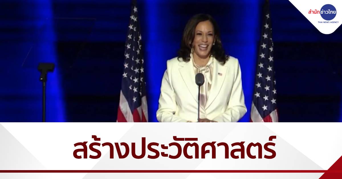 นางคามาลา แฮร์ริส ว่าที่รองประธานาธิบดีสหรัฐ สร้างประวัติศาสตร์หน้าใหม่ให้แก่วงการเมืองสหรัฐ โดยเป็นสตรีคนแรก ชาวอเมริกันผิวสีคนแรก และชาวอเมริกันเชื้อสายเอเชียคนแรก ที่ได้ครองตำแหน่งสูงสุดอันดับ 2 ทางการเมืองของสหรัฐ นางแฮร์ริส กล่าวว่า เมื่อเธอเป็นสตรีคนแรกที่มาถึงตำแหน่งนี้ได้ และจะไม่เป็นคนสุดท้ายอย่างแน่นอน เพราะสิ่งที่ทุกคนได้เห็น คือสหรัฐอเมริกาเป็นประเทศที่อะไรก็เป็นไปได้