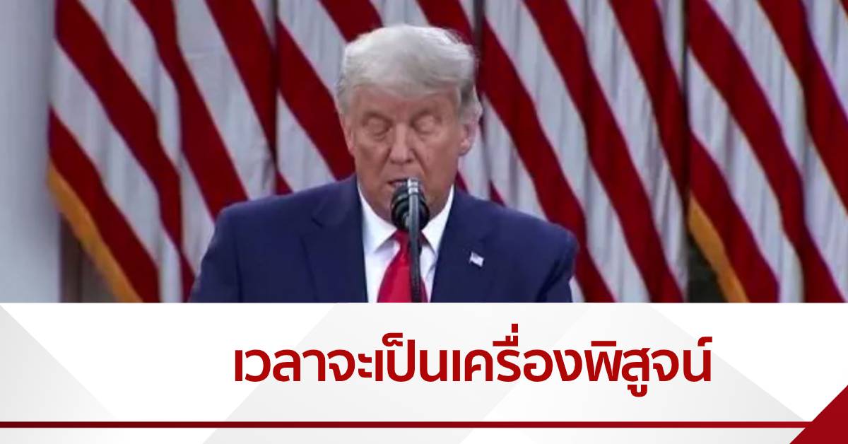 วอชิงตัน 14 พ.ย. – ประธานาธิบดีโดนัลด์ ทรัมป์ ของสหรัฐ เกือบจะแต่ยังไม่กล่าวยอมรับความพ่ายแพ้ในการเลือกตั้งประธานาธิบดีสหรัฐเมื่อวันที่ 3 พฤศจิกายน ให้กับนายโจ ไบเดน จากพรรคเดโมแครต โดยกล่าวเพียงว่า “เวลาจะเป็นเครื่องพิสูจน์”