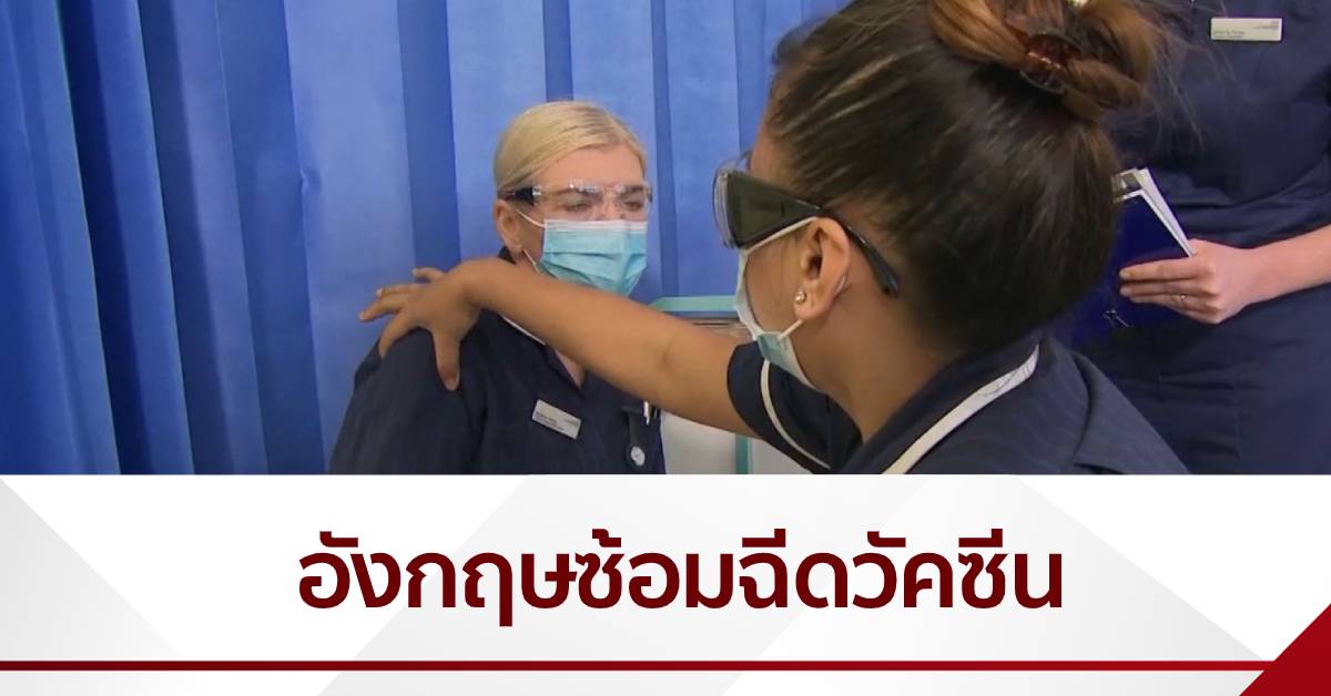 โรงพยาบาลในอังกฤษเริ่มดำเนินการฝึกซ้อมการฉีดวัคซีนต้านโควิด-19 หลังจากที่ได้รับวัคซีนลอตแรกไปเมื่อสองวันที่ผ่านมา โดยอังกฤษเป็นชาติแรกที่อนุมัติให้ใช้วัคซีนต้านโควิด-19 ของบริษัทไฟเซอร์ได้ หัวหน้าพยาบาลของโรงพยาบาลในเมืองโคเวนทรี่ เผยว่าทางโรงพยาบาลมีความพร้อมแล้วสำหรับการฉีดวัคซีนให้ประชาชนวันละ 400 คน วัคซีนลอตแรกที่อังกฤษได้รับจำนวน 800,000 โดส เพียงพอสำหรับประชาชน 400,000 คน โดยจะเริ่มฉีดในสัปดาห์หน้า ขณะที่ผู้สูงอายุตามบ้านพักคนชราและผู้ดูแล ตลอดจนเจ้าหน้าที่ด้านการแพทย์จะเป็นกลุ่มแรกที่ได้รับการฉีดวัคซีนป้องกันโควิด-19.-สำนักข่าวไทย