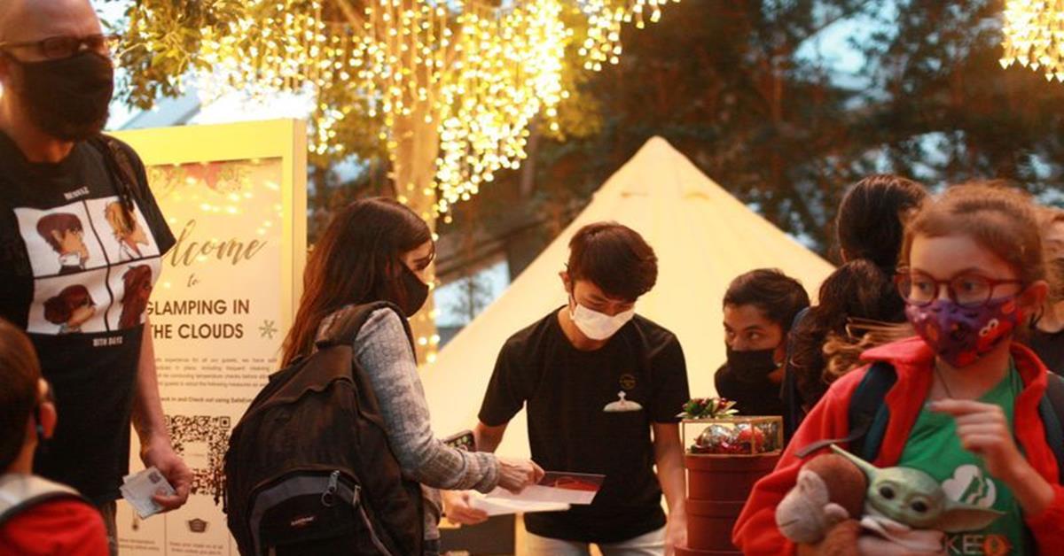 การพักแบบใหม่เรียกว่า glamping มาจากคำว่า glamourous camping หรือพักแรมแบบตื่นเต้นผจญภัย ให้ลูกค้าได้รับประสบการณ์การนอนในเต็นท์หรูบนที่นอนควีนไซส์ ประดับไฟคริสต์มาสสวยงามในพื้นที่ส่วนร้านค้าและพักผ่อนของท่าอากาศยานชางงี พร้อมคูปองส่วนลดสินค้าและกล่องสำหรับปิกนิก คิดราคาทั้งหมด 360 ดอลลาร์สิงคโปร์ (ราว 8,130 บาท) ต่อการพัก 1 คืน ไม่รวมของใช้ส่วนตัวในห้องอาบน้ำ เปิดให้พักจนถึงวันที่ 28 ธันวาคม และขณะนี้ถูกจองหมดแล้ว