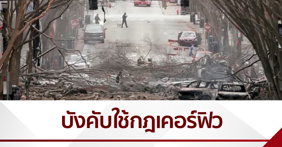 สหรัฐ 26 ธ.ค. – นายกเทศมนตรีเมืองแนชวิลล์ รัฐเทนเนสซีของสหรัฐ บังคับใช้กฎเคอร์ฟิวในพื้นที่โดยรอบที่เกิดเหตุรถบ้านระเบิดอย่างรุนแรง เพื่อให้ทีมสอบสวน นำโดยเอฟบีไอ ทำงานได้เต็มที่