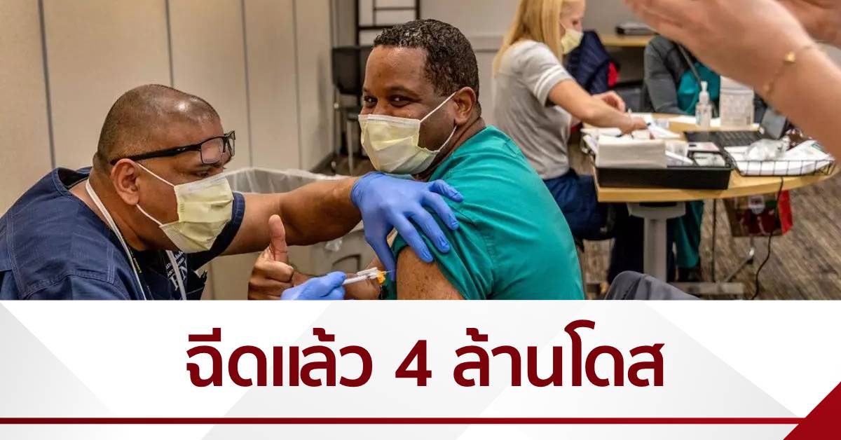 วอชิงตัน 3 ม.ค.- สหรัฐที่มีผู้ป่วยโรคติดเชื้อไวรัสโคโรนา 2019 หรือโควิด-19 มากที่สุดในโลกฉีดวัคซีนป้องกันไปแล้วกว่า 4.2 ล้านโดส ส่วนรัสเซียที่มีผู้ป่วยมากเป็นอันดับสี่ของโลกฉีดไปแล้วกว่า 800,000 โดส