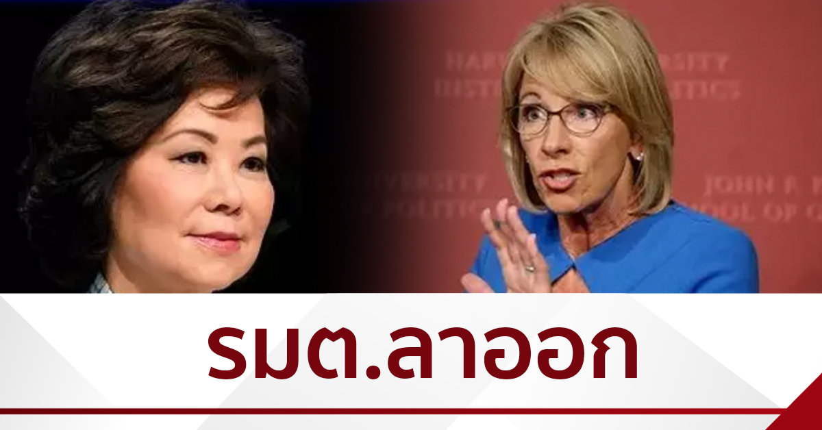 วอชิงตัน 8 ม.ค. – นางอิเลน เชา รัฐมนตรีคมนาคมและนางเบตซีย์ เดวอส รัฐมนตรีการศึกษา ลาอออกจากรัฐบาลของประธานาธิบดีโดนัลด์ ทรัมป์แล้วเมื่อวานนี้ เป็นเจ้าหน้าที่ระดับสูง 2 รายล่าสุดที่ลาออกเพื่อประท้วงการที่ผู้สนับสนุนนายทรัมป์บุกรุกเข้าในอาคารรัฐสภาเมื่อวันพุธ