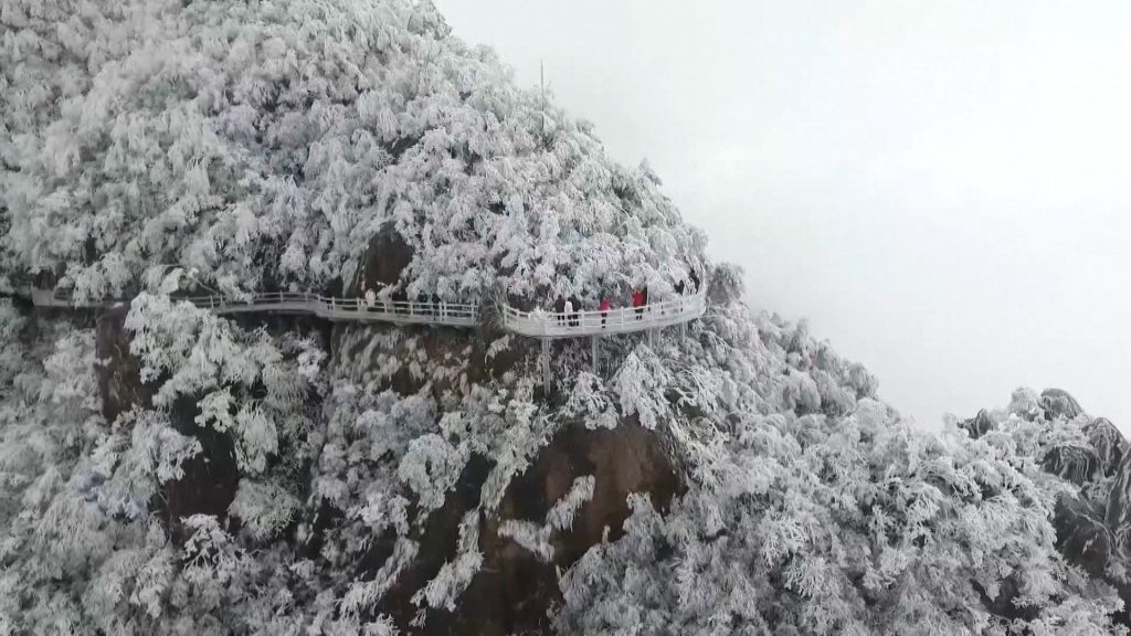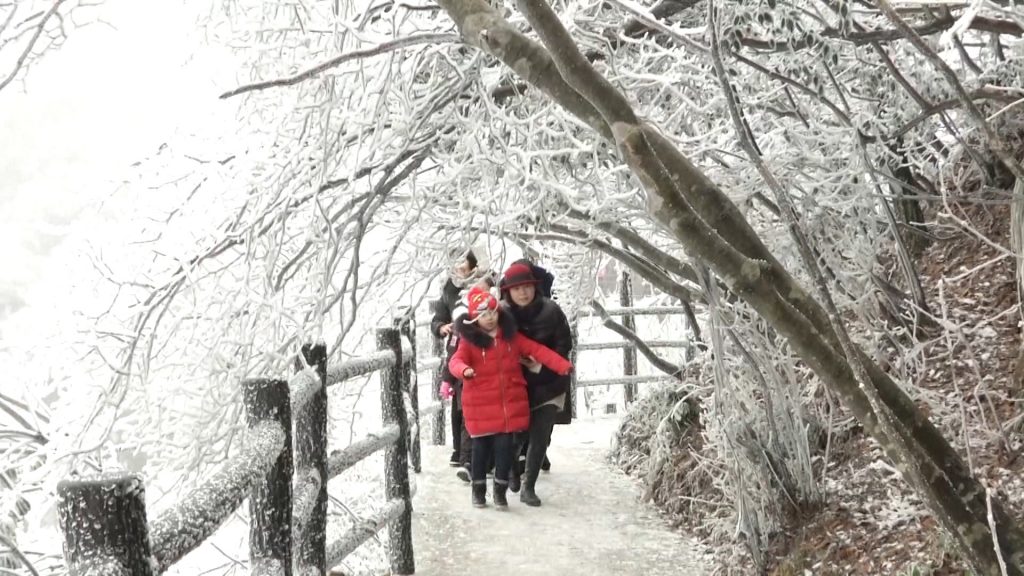 ส่วนทางภาคใต้ของจีนที่ปกติจะมีอากาศค่อนข้างอบอุ่นนั้น ก็มีอุณหภูมิลดลงอย่างมากเช่นกัน แหล่งท่องเที่ยวจิ่วหัวซาน ในเมืองฉือโจว มณฑลอันฮุย มีอุณหภูมิลดต่ำลงถึง -7 องศาเซลเซียส ภูมิทัศน์ที่สวยงามดึงดูดนักท่องเที่ยวจำนวนมาก .-สำนักข่าวไทย