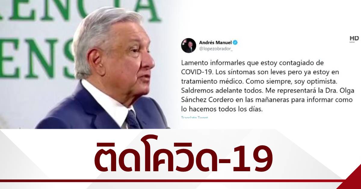 เม็กซิโก 25 ม.ค.-ประธานาธิบดีเม็กซิโก วัย 67 ปี โพสต์ทวิตเตอร์ รับผลตรวจโควิด-19 เป็นบวก แสดงอาการเล็กน้อย อยู่ระหว่างรักษาตัว