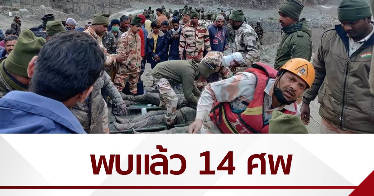 ลัคเนา 8 ก.พ. – เหตุธารน้ำแข็งแตกและไหลชนเขื่อนเมื่อวานนี้ทำให้มีผู้เสียชีวิต 14 คนแล้ว ขณะที่ทหารอินเดียหลายร้อยนายลงพื้นที่แถบเทือกเขาหิมาลัยเพื่อค้นหาผู้สูญหายอย่างน้อย 125 คน