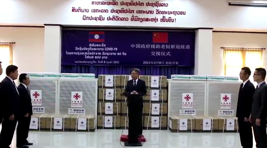 สปป ลาว เป็นหนึ่งในประเทศแรก ๆ ที่รับการช่วยเหลือด้านวัคซีนจากรัฐบาลจีน โดยในพิธีส่งมอบวัคซีนอย่างเป็นทางการ นายพันคำ วิพาวัน รองประธานาธิบดีของ สปป ลาว กล่าวว่า ก่อนหน้านี้ ลาวได้เริ่มฉีดวัคซีนของจีนให้แก่บุคคลกลุ่มเสี่ยงสูงไปแล้ว ซึ่งปรากฎว่าไม่มีผลข้างเคียงใด ๆ ซึ่งยืนยันได้ว่าวัคซีนที่ใช้ปลอดภัยและมีประสิทธิภาพ