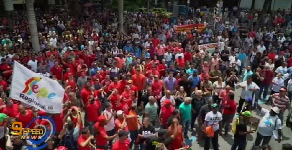 บราซิล 23 พ.ย. – ชาวบราซิลกว่า 1,000 คน ชุมนุมประท้วงต่อต้านมาตรการรัดเข็มขัดของรัฐบาลท้องถิ่นรัฐรีโอเดจาเนโร ทางการวางกำลังตำรวจปิดกั้นเส้นทางไม่ให้ผู้ชุมนุมเข้าถึงอาคารรัฐสภาที่ ส.ส.กำลังประชุมกันอยู่ ผู้มาร่วมชุมนุมมีทั้งพนักงานดับเพลิง ตำรวจ เจ้าหน้าที่สาธารณสุข และครูอาจารย์ ซึ่งหลายคนไม่ได้รับเงินเดือนตามกำหนด