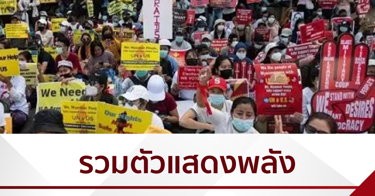 ย่างกุ้ง 17 ก.พ. – กลุ่มต่อต้านการก่อรัฐประหารในเมียนมา ประกาศรวมตัวกันในชุมนุมประท้วงครั้งใหญ่ในวันนี้ เพื่อแสดงให้เห็นว่า การที่กองทัพเมียนมาอ้างว่า ได้รับการสนับสนุนอย่างกว้างขวางในการก่อรัฐประหารยึดอำนาจจากนางอองซาน ซูจี ผู้นำรัฐบาลที่มาจากการเลือกตั้งและคำกล่าวที่ว่าจะจัดให้มีการเลือกตั้งทั่วไปครั้งใหม่นั้น เป็นเรื่องไม่จริง